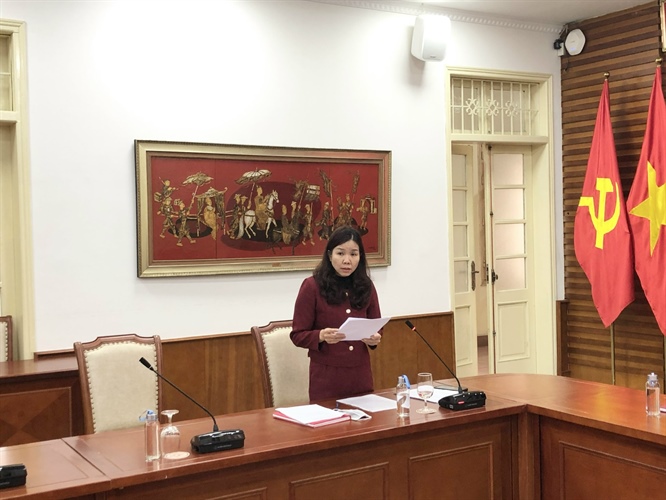 Chánh Văn phòng Đảng ủy Bộ Nguyễn Thị Hạnh trình bày báo cáo