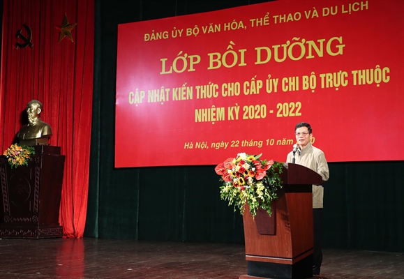 Phát biểu khai mạc, Phó Bí thư Thường trực Đảng ủy Bộ VHTTDL Nguyễn Tuấn Linh nhấn mạnh: Lớp bồi dưỡng cập nhật kiến thức dành cho Cấp ủy các chi bộ trực thuộc nhiệm kỳ 2020-2022 nhằm bồi dưỡng, cập nhật những kiến thức cơ bản nhất về vị trí, vai trò, chức năng, nhiệm vụ và tầm quan trọng của tổ chức đảng, về phương thức lãnh đạo, công tác xây dựng Đảng chi bộ, hướng dẫn thực hiện nghiệp vụ cho các đảng, bí thư chi bộ vận dụng thực hiện tốt chức trách nhiệm vụ được giao, góp phần xây dựng Đảng trong sạch, vững mạnh, nâng cao năng lực lãnh đạo, sức chiến đấu của tổ chức Đảng và đảng viên, nâng cao chất lượng chi bộ.