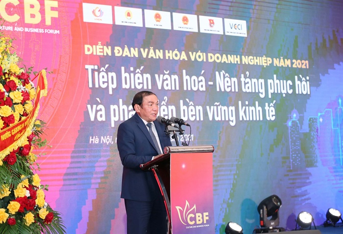 Phát biểu tại Diễn đàn, Bộ trưởng Nguyễn Văn Hùng nhấn mạnh, thiết thực triển khai thực hiện ý kiến chỉ đạo của Tổng Bí thư Nguyễn Phú Trọng tại Hội nghị văn hóa toàn quốc vừa qua, tiếp tục đẩy mạnh Cuộc vận động Xây dựng Văn hóa doanh nghiệp Việt Nam, Diễn đàn quốc gia Văn hóa với Doanh nghiệp năm 2021 với chủ đề Tiếp biến văn hóa - Nền tảng phục hồi và phát triển bền vững kinh tế là diễn đàn hết sức quan trọng để các nhà quản lý, nhà nghiên cứu, các chuyên gia và cộng đồng doanh nghiệp tọa đàm, trao đổi, thống nhất một cách tiếp cận chung về tiếp biến văn hóa để phục hồi, phát triển kinh tế trên tinh thần nhận thức đúng để có hành động đẹp.