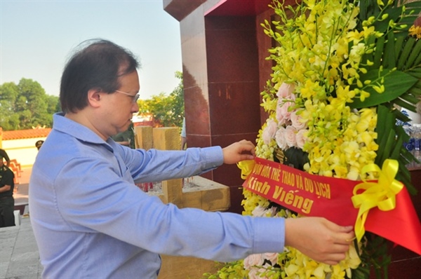 Trong không khí trang nghiêm, thành kính, Thứ trưởng Bộ Văn hóa, Thể thao và Du lịch Tạ Quang Đông cùng đoàn công tác của Bộ đã bày tỏ lòng tri ân sâu sắc trước sự hy sinh của các anh hùng liệt sĩ đã không tiếc máu xương, cống hiến tuổi thanh xuân cho sự nghiệp cách mạng, đấu tranh thống nhất đất nước.