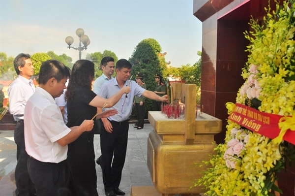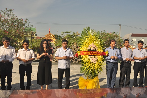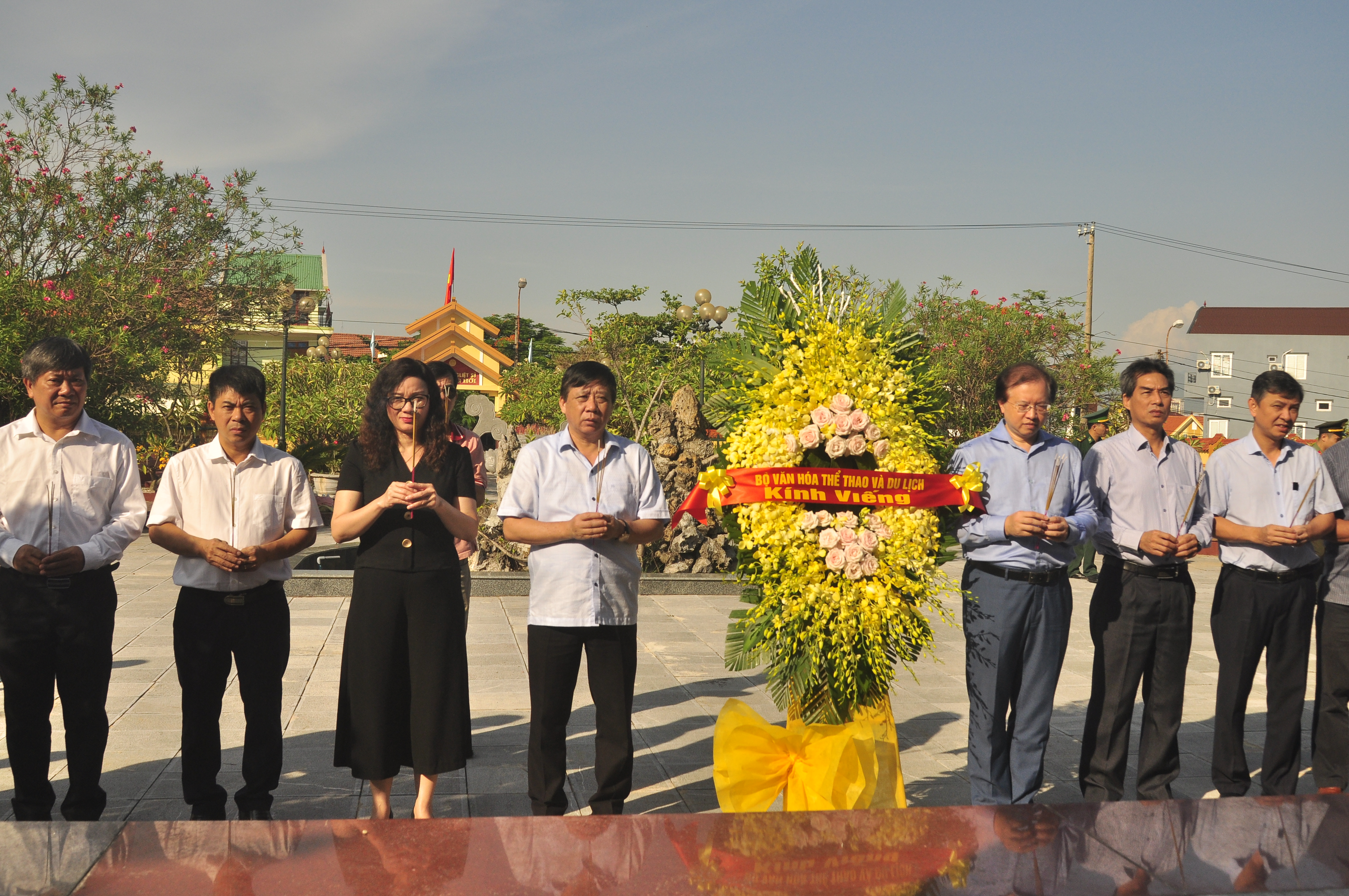 Tại nghĩa trang liệt sĩ thành phố Đồng Hới, đoàn công tác của Bộ Văn hóa, Thể thao và Du lịch đã kính cẩn đặt vòng hoa, dâng hương tại đài tưởng niệm và thắp hương lên phần mộ các anh hùng liệt sĩ.