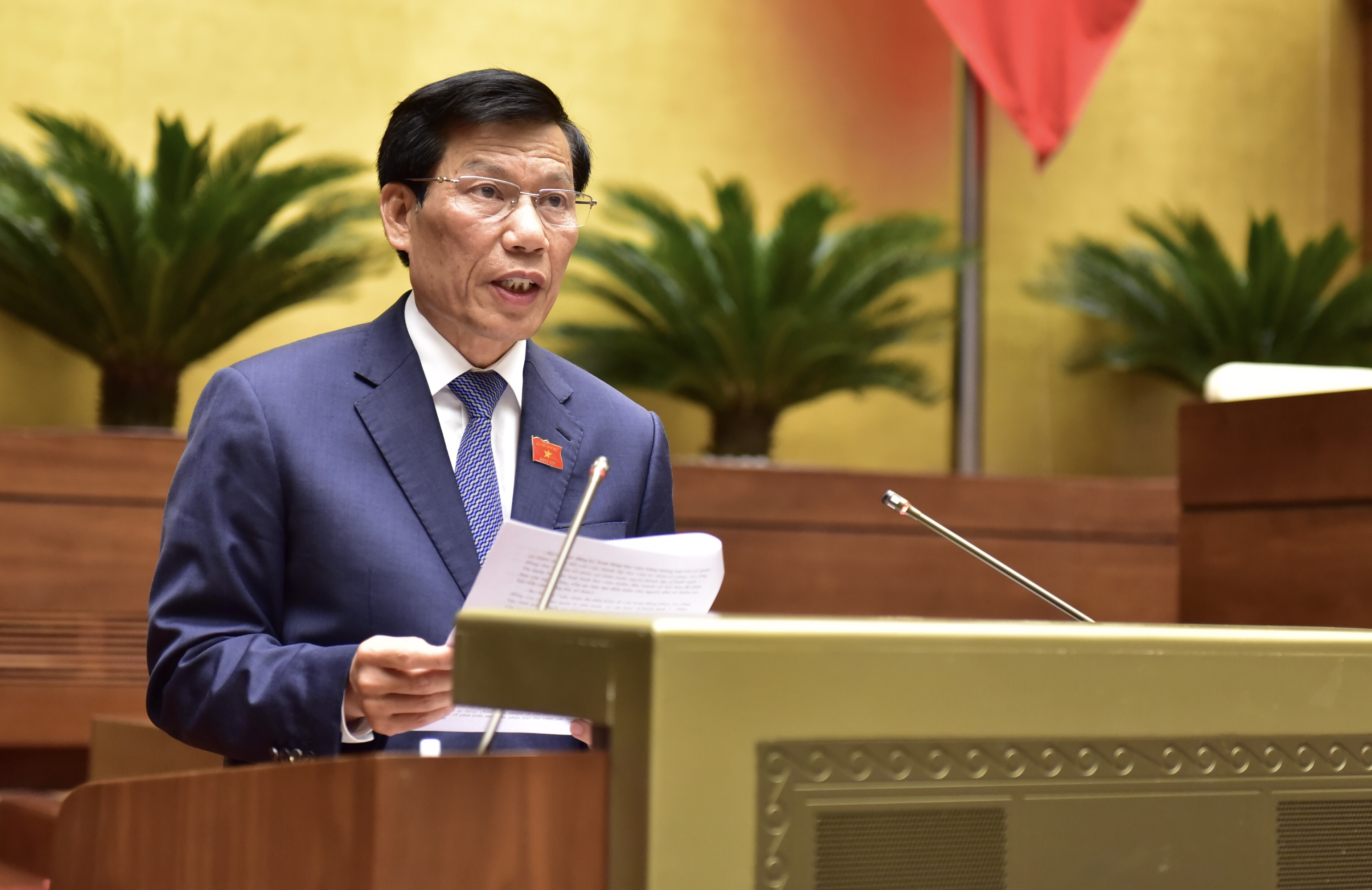 Thừa ủy quyền của Thủ tướng Chính phủ, Bộ trưởng Nguyễn Ngọc Thiện đã trình bày Tờ trình về dự án Luật Thư viện trước Quốc hội