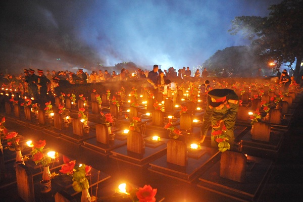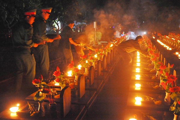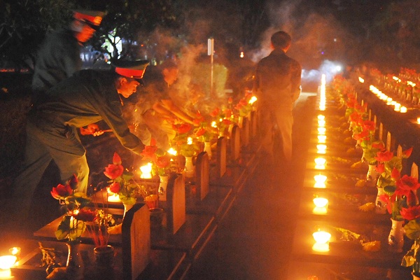 Những ngọn nến tri ân được thắp sáng khắp các phần mộ các liệt sĩ