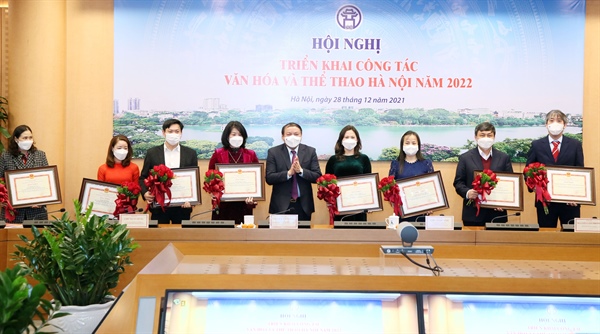 Bộ trưởng Bộ VHTTDL Nguyễn Văn Hùng đánh giá cao những kết quả mà ngành VHTT Thủ đô đã giành được trong năm 2021