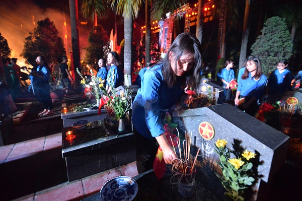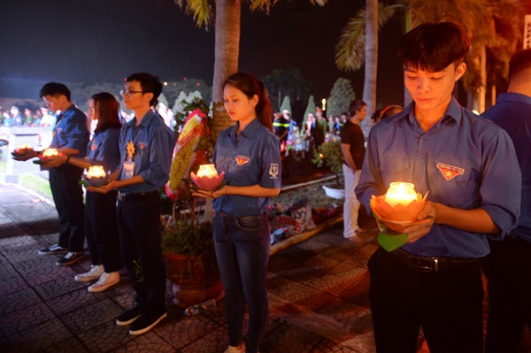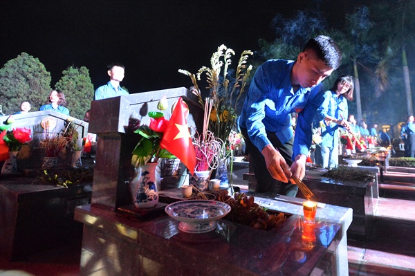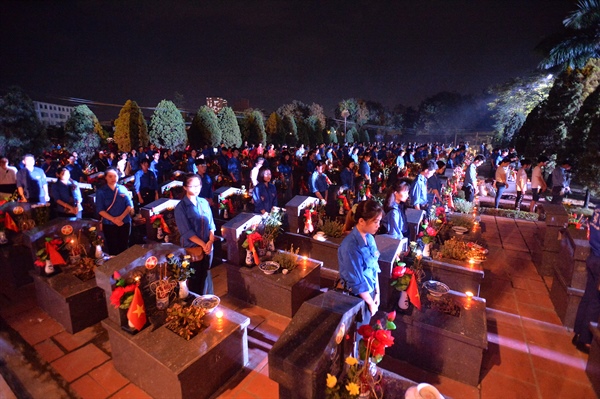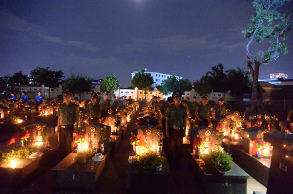 Tối 26.7, Thành đoàn Hà Nội đã tổ chức Lễ thắp nến tri ân, kính cẩn dâng lên hương hồn các liệt sĩ, tại Nghĩa trang thành phố Hà Nội)
