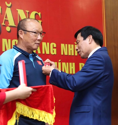 Bộ trưởng Nguyễn Ngọc Thiện khẳng định đây là phần thưởng cao quý mà Đảng, Nhà nước và nhân dân Việt Nam trao tặng HLV Park Hang-seo và 2 trợ lý