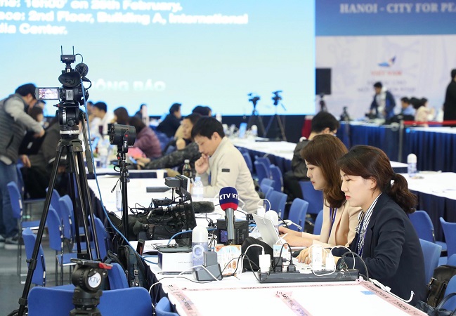 Đại diện VTV cho biết, nhân lực triển khai tại Trung tâm báo chí quốc tế gồm cán bộ, phóng viên, biên tập viên, kỹ thuật viên lên tới hàng trăm người trong thời gian trước, trong và sau hội nghị.