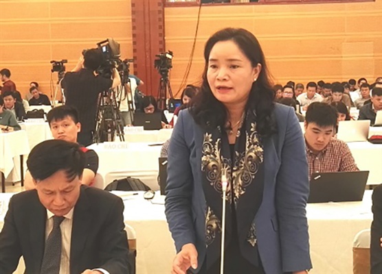 Thứ trưởng Trịnh Thị Thuỷ trả lời tại phiên họp báo Chính phủ