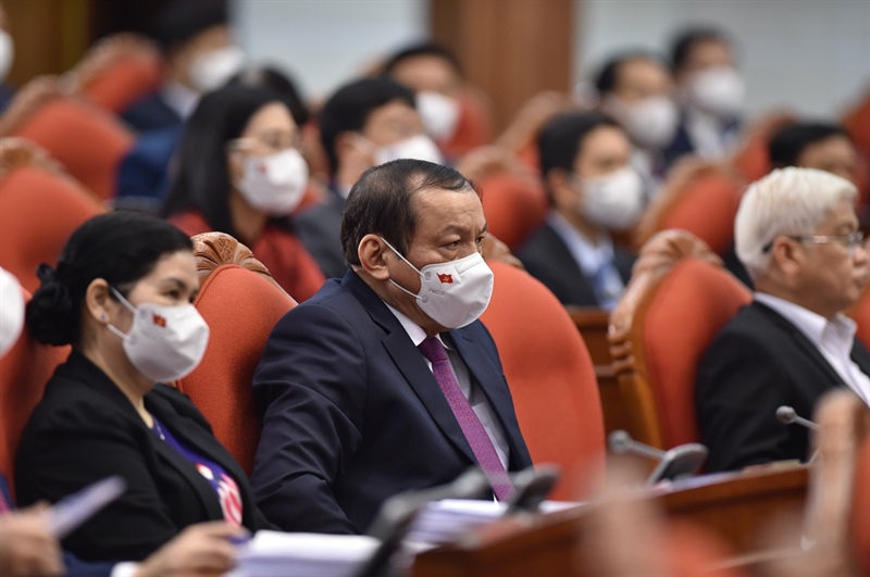 Tổng Bí thư Nguyễn Phú Trọng, Chủ tịch nước Nguyễn Xuân Phúc, Thủ tướng Chính phủ Phạm Minh Chính, Chủ tịch Quốc hội Vương Đình Huệ và các đại biểu tại phiên bế mạc Hội nghị