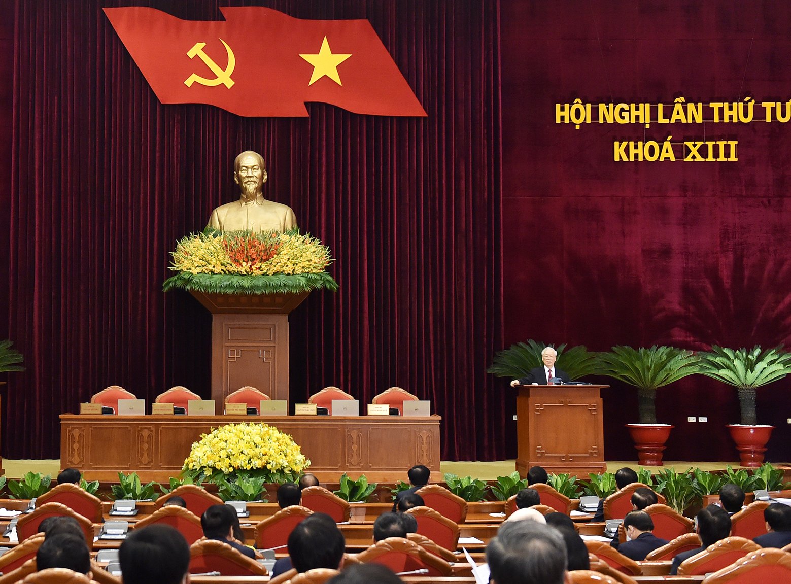 Về nhiệm vụ, giải pháp trong thời gian tới, Tổng Bí thư Nguyễn Phú Trọng cho biết, Trung ương thống nhất cao phải tiến hành đồng bộ và quyết liệt hơn nữa nhiều công việc cụ thể, thiết thực, tập trung vào 4 nhóm nhiệm vụ, giải pháp mà Hội nghị Trung ương 4 khoá XII đã đề ra. Đồng thời bổ sung nhấn mạnh thêm 2 nhóm nhiệm vụ, giải pháp, đó là xây dựng đội ngũ cán bộ các cấp, nhất là cấp chiến lược và người đứng đầu đủ phẩm chất, năng lực và uy tín, ngang tầm nhiệm vụ; kiên quyết, kiên trì đấu tranh phòng, chống tham nhũng, tiêu cực, xử lý nghiêm cán bộ sai phạm.