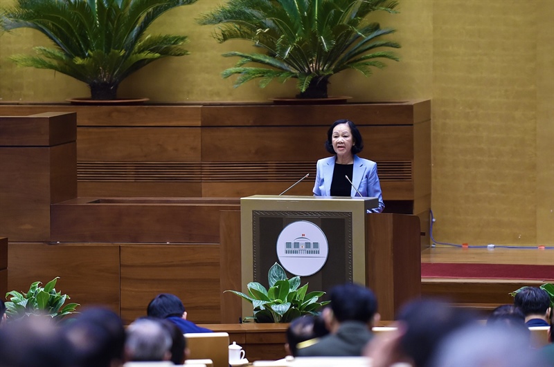 Trưởng Ban Tổ chức Trung ương Trương Thị Mai trình bày báo cáo tại Hội nghị