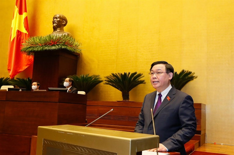 Phát biểu khai mạc kỳ họp, Chủ tịch Quốc hội Vương Đình Huệ nêu rõ, trong năm 2021, nhất là quý III/2021, đợt bùng phát dịch lần thứ 4 với biến chủng Delta đã tác động nặng nề tới mọi mặt đời sống kinh tế - xã hội của đất nước. Nhờ sự chỉ đạo đúng đắn, kịp thời của Đảng, Nhà nước, tình hình kinh tế - xã hội những tháng cuối năm 2021 đã có nhiều chuyển biến tích cực. Tuy nhiên nền kinh tế vẫn còn đối diện với nhiều khó khăn, thách thức, tình dịch bệnh trong nước và trên thế giới vẫn diễn biến phức tạp, sinh kế của người dân và người lao động còn nhiều khó khăn, còn nguy cơ lỡ nhịp với nền kinh tế thế giới,…Trước yêu cầu bức thiết của đất nước, căn cứ vào công tác chuẩn bị, và quy định của Hiến pháp và pháp luật, Quốc hội quyết định triệu tập kỳ họp bất thường lần thứ nhất để kịp thời quyết định các vấn đề cấp bách để khôi phục và phát triển kinh tế, xã hội đất nước trong thời gian tới.