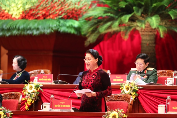 Cuối bài phát biểu, Tổng Bí thư, Nguyễn Phú Trọng nhắc đến lời dặn của Chủ tịch Hồ Chí Minh: “Đại hội Đảng rất quan hệ đến tương lai cách mạng, của Đảng, của nhân dân ta. Đại hội sẽ làm cho Đảng đã đoàn kết càng đoàn kết hơn, tư tưởng và hành động đã nhất trí càng nhất trí hơn nữa”.