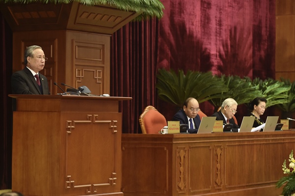 Tổng Bí thư, Chủ tịch nước Nguyễn Phú Trọng đề nghị các đồng chí Trung ương nghiên cứu kỹ Tờ trình của Bộ Chính trị và các tài liệu có liên quan, thảo luận, đóng góp ý kiến để hoàn chỉnh báo cáo của Ban Chấp hành Trung ương khóa XII về công tác nhân sự Ban Chấp hành Trung ương khóa XIII; đồng thời xem xét, đề cử nhân sự 4 chức danh lãnh đạo chủ chốt khóa XIII. Đây là khâu rất quan trọng.