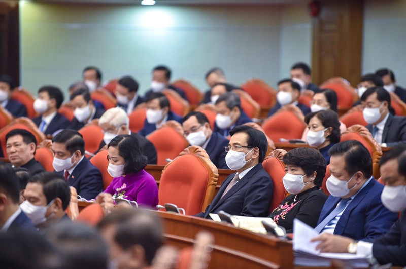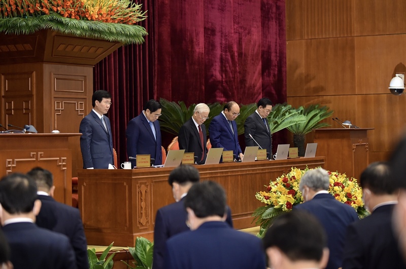 Trước khi tiến hành chương trình Hội nghị, Trung ương đã dành 1 phút mặc niệm đồng bào, đồng chí, chiến sĩ hy sinh, từ trần vì dịch bệnh Covid-19 vừa qua.