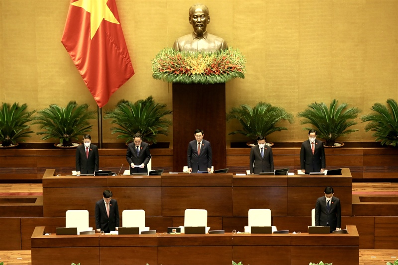 Tại phiên khai mạc, lãnh đạo, nguyên lãnh đạo Đảng, Nhà nước, đại biểu Quốc hội, các vị khách quý đã dành một phút mặc niệm để tri ân và tưởng nhớ đồng bào, cán bộ, chiến sĩ đã từ trần, hy sinh vì đại dịch Covid-19.