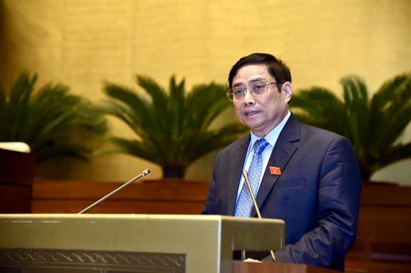 Về tình hình phát triển KT-XH, Thủ tướng Phạm Minh Chính cho biết: Nhằm khắc phục những khó khăn do tác động nghiêm trọng của dịch -19, Chính phủ đã chỉ đạo các cấp, các ngành, các địa phương vừa phải quyết liệt triển khai thực hiện Nghị quyết Đại hội Đảng toàn quốc lần thứ XIII, các Nghị quyết, Kết luận của Trung ương, Quốc hội, chỉ đạo của Bộ Chính trị, Ban Bí thư và các Nghị quyết, chương trình, kế hoạch hành động của Chính phủ; phối hợp chặt chẽ, linh hoạt giữa chính sách tài khóa, tiền tệ và các chính sách khác trong chỉ đạo, điều hành; tập trung giải quyết khó khăn, tháo gỡ vướng mắc, vượt qua thách thức; nỗ lực phấn đấu cao nhất thực hiện các mục tiêu, nhiệm vụ, giải pháp đã được Quốc hội giao.