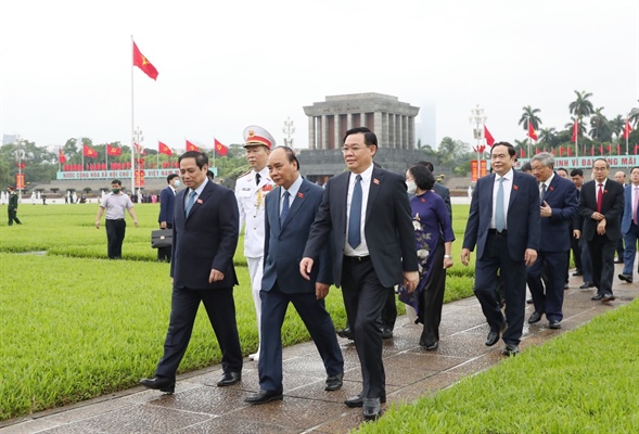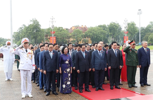 Lãnh đạo Đảng, Nhà nước, Mặt trận Tổ quốc Việt Nam và các đại biểu vào Lăng viếng Chủ tịch Hồ Chí Minh