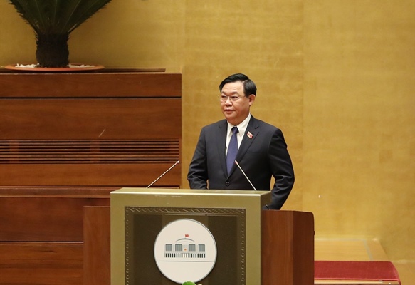 Phó Thủ tướng Chính phủ Lê Văn Thành trình bày báo cáo tại Kỳ họp