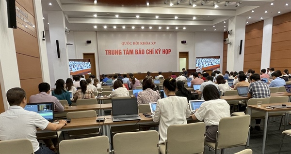 Phóng viên báo chí tác nghiệp tại Trung tâm Báo chí Kỳ họp