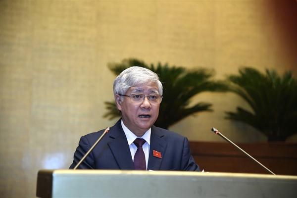 Chủ tịch Ủy ban Trung ương Mặt trận Tổ quốc Việt Nam Đỗ Văn Chiến trình bày Báo cáo tổng hợp ý kiến, kiến nghị của cử tri và Nhân dân gửi đến Kỳ họp thứ Nhất, Quốc hội khóa XV
