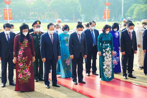 Tiếp đó, Đoàn đại biểu Ban Chấp hành Trung ương Đảng, Chủ tịch nước, Quốc hội, Chính phủ, Ủy ban Trung ương Mặt trận Tổ quốc Việt Nam đã đến đặt vòng hoa và dâng hương tưởng niệm các Anh hùng Liệt sỹ tại Đài tưởng niệm các Anh hùng Liệt sỹ, đường Bắc Sơn, Hà Nội.