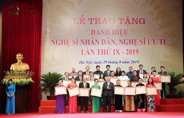 Thủ tướng Nguyễn Xuân Phúc trao trặng danh hiệu NSND lần thứ IX năm 2019 cho các nghệ sĩ