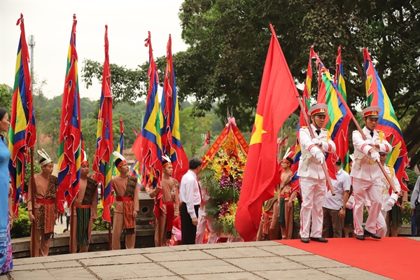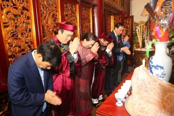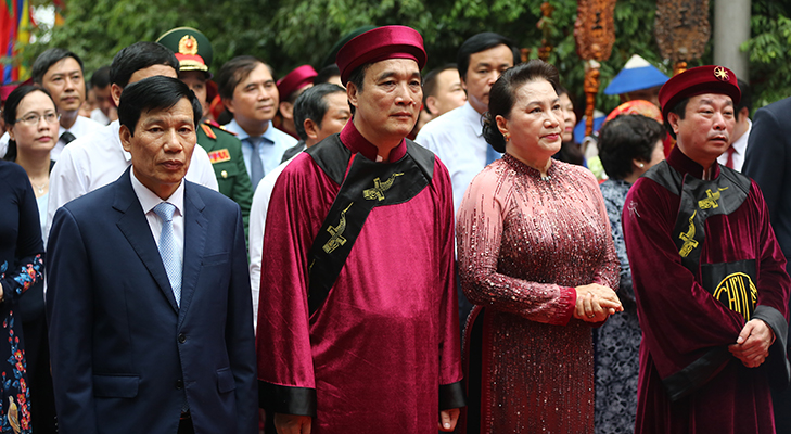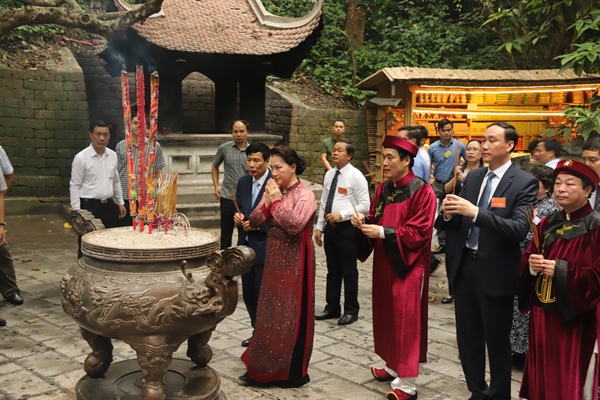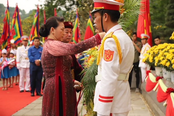 Sau Lễ dâng hương tại Đền Thượng, Chủ tịch Quốc hội Nguyễn Thị Kim Ngân; Bộ trưởng Nguyễn Ngọc Thiện và các đại biểu đặt vòng hoa và thắp hương tại Lăng Hùng Vương; dâng hoa tại bức phù điêu "Bác Hồ nói chuyện với Đại đoàn quân tiên phong" tại ngã năm Đền Giếng
