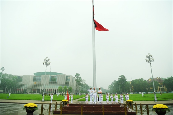 Đúng 6 giờ sáng 3.5, tại Quảng trường Ba Đình (Hà Nội), nghi thức treo cờ rủ được tiến hành, bắt đầu Quốc tang Đại tướng Lê Đức Anh, nguyên Ủy viên Bộ Chính trị, nguyên Chủ tịch nước Cộng hòa xã hội chủ nghĩa Việt Nam, nguyên Cố vấn Ban Chấp hành Trung ương Đảng trong 2 ngày 3 và 4.5.2019. Cũng trong thời gian này, tất cả các cơ quan, công sở, nơi công cộng đều treo cờ rủ và ngừng tất các cả hoạt động vui chơi, giải trí