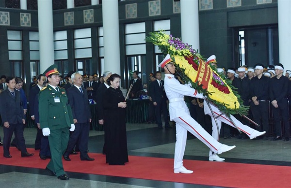 Đoàn Quốc hội do Ủy viên Bộ Chính trị, Chủ tịch Quốc hội Nguyễn Thị Kim Ngân làm Trưởng đoàn vào viếng nguyên Chủ tịch nước Lê Đức Anh