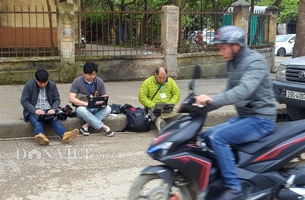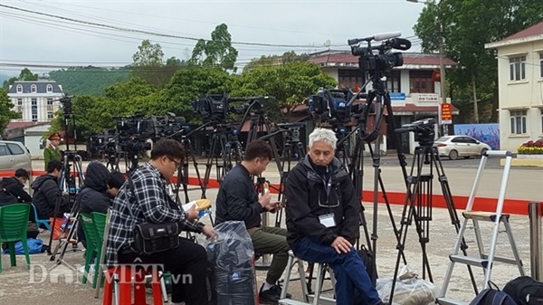 Các phóng viên túc trực tại đây từ sớm trong đó có nhiều đoàn phóng viên quốc tế như Hàn Quốc, Nhật Bản...