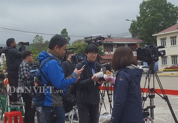 Đến sáng nay, lượng phóng viên đổ về địa điểm này mỗi lúc một nhiều. Theo ghi nhận của phóng viên Dân Việt cho thấy, các hãng thông tấn của Hàn Quốc, Nhật Bản chiếm đa số. Các phóng viên bám trụ hầu như từ sáng đến tối. Họ làm việc không ngừng nghỉ, mọi lúc mọi nơi để có thể đưa thông tin nhanh và chính xác nhất. Nhiều phóng viên phải ăn tạm bánh mỳ, mỳ tôm qua bữa để không bỏ sót những hình ảnh tại ga Đồng Đăng (Lạng Sơn).