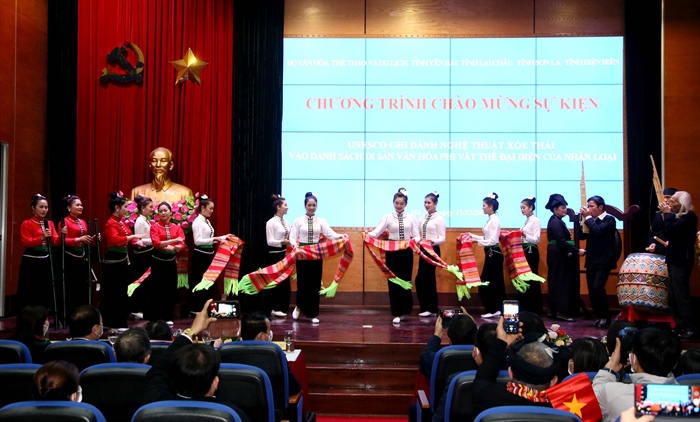 Tại đầu cầu Việt Nam, lãnh đạo Bộ VHTTDL Việt Nam, lãnh đạo 4 tỉnh Điện Biên, Lai Châu, Sơn La và Yên Bái cùng đại diện cộng đồng người Thái 4 địa phương đã cùng chứng kiến giây phút thiêng liêng khi Nghệ thuật Xòe Thái của Việt Nam chính thức được UNESCO ghi danh vào Danh sách Di sản văn hóa phi vật thể đại diện của nhân loại.