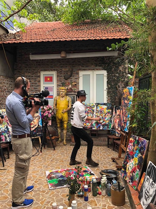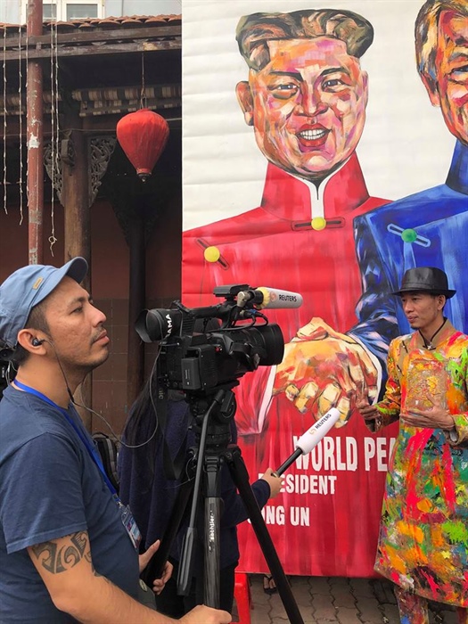 Hãng thông tấn Reuteurs phỏng vấn họa sĩ Trần Lâm Bình về tác phẩm vẽ hai nhà lãnh đạo Mỹ, Triều Tiên