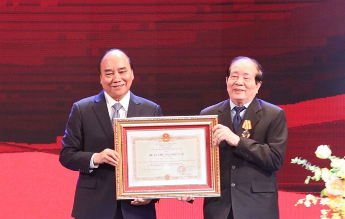 Chủ tịch nước Nguyễn Xuân Phúc trao tặng Huân chương Độc lập Hạng Nhì cho Nhà thơ Hữu Thỉnh. Ảnh: VPCTN