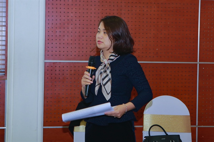Bà Nguyễn Quỳnh Liên, đại diện Bộ Tư pháp phát biểu tại Hội nghị