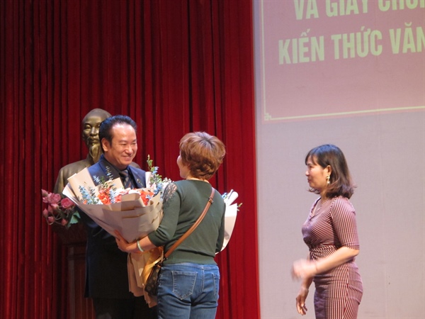 Các phụ huynh học viên tặng hoa cảm ơn thầy Trần Văn Hải, Quyền Giám đốc Học viện