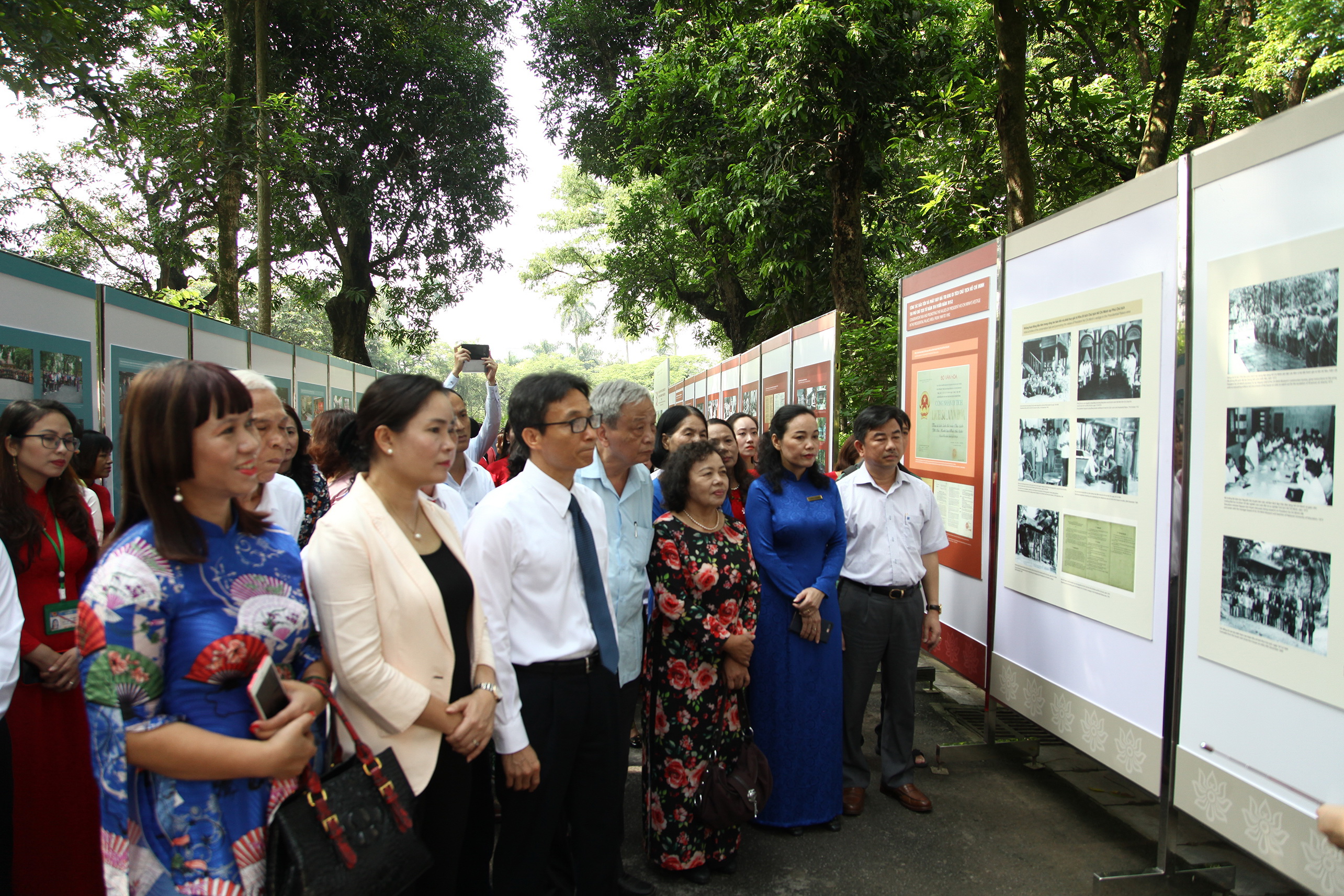 Ngay sau hội nghị, Phó Thủ tướng Vũ Đức Đam, Thứ trưởng Trịnh Thị Thủy đã cắt băng khai mạc triển lãm “50 năm bảo tồn và phát huy giá trị Khu di tích Chủ tịch Hồ Chí Minh tại Phủ Chủ tịch” tại Đường Xoài. Triển lãm giới thiệu 200 bức ảnh tư liệu, gồm 3 phần nói về chặng đường lịch sử, những dấu mốc đáng nhớ từ khi Chủ tịch Hồ Chí Minh bắt đầu về ở, làm việc tại Khu di tích cho đến khi Người qua đời (1954- 1969); quá trình hình thành, phát triển cũng như công tác bảo tồn, phát huy giá trị Khu di tích từ năm 1969 đến nay.