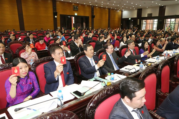 Các đại biểu biểu quyết thông qua giới thiệu của Đại hội đối với nhân sự Bí thư Đảng ủy Khối các cơ quan Trung ương lần thứ XIII, nhiệm kỳ 2020-2025