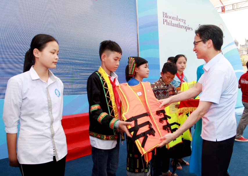 Phó Thủ tướng Vũ Đức Đam tặng áo phao cho trẻ em
