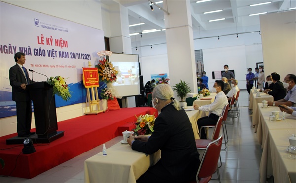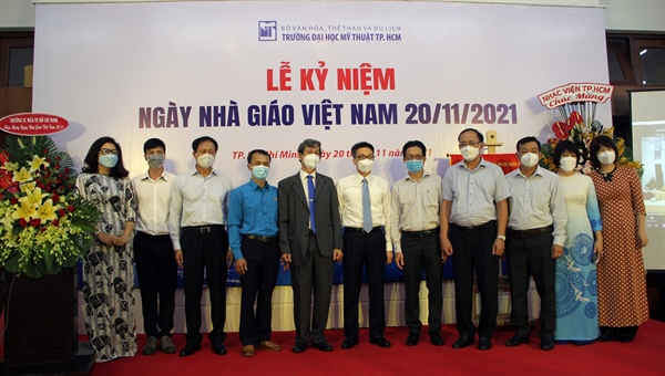 Thay mặt các thế hệ nhà giáo, PGS.TS Nguyễn Văn Minh, Hiệu trưởng Trường ĐH Mỹ thuật TP.HCM đã cám ơn Phó Thủ tướng Chính phủ Vũ Đức Đam đã đến thăm nhà trường và có những chia sẻ, động viên chân tình, đó chính là động lực để các thế hệ giảng viên và sinh viên nhà trường nỗ lực, phấn đấu hơn nữa trong thời gian tới. Cũng tại lễ kỷ niệm, Hiệu trưởng Trường ĐH Mỹ thuật TP.HCM đã ôn lại truyền thống Ngày Nhà giáo Việt Nam 20.11 và quá trình thành lập trường. Theo đó, từ Trường Vẽ Gia Định 1913 đến Trường ĐH Mỹ thuật TP.HCM hôm nay, với chặng đường 108 năm qua đã không ngừng lớn mạnh về mọi mặt, đào tạo bổ sung cho đất nước nói chung và khu vực phía Nam nói riêng nguồn nhân lực mỹ thuật, góp phần vào sự nghiệp xây dựng và phát triển nền văn hóa nghệ thuật Việt Nam tiên tiến đậm đà bản sắc dân tộc. “Có được những thành tựu đó, trước hết là công lao của tất cả các thế hệ giảng viên, viên chức, sinh viên và học viên của nhà trường, trong đó đội ngũ thầy cô giáo có vai trò hết sức to lớn. Các thế hệ thầy cô giáo của nhà trường mãi là tấm gương sáng, vượt qua mọi khó khăn đưa Trường ĐH Mỹ thuật TP.HCM từng bước phát triển vững chắc, kể cả những lúc khó khăn nhất của đại dịch Covid-19”, Hiệu trưởng nhà trường nhấn mạnh.