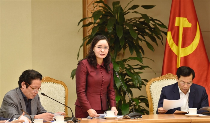 Thứ trưởng Bộ VHTTDL Trịnh Thị Thủy báo cáo tại Hội nghị