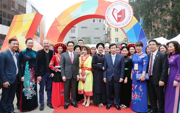 Phó Thủ tướng Vũ Đức Đam, Bộ trưởng Nguyễn Ngọc Thiện cùng các thế hệ giảng viên, sinh viên Trường Đại học Văn hóa Hà Nội
