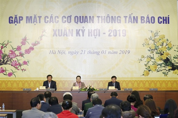 “Trong không khí Tết cổ truyền Kỷ Hợi của dân tộc đang đến gần, buổi gặp mặt hôm nay là dịp để nhìn lại công tác thông tin báo chí trong một năm qua, cũng là dịp để Quốc hội, các cơ quan của Quốc hội cảm ơn sâu sắc sự hợp tác chặt chẽ và những đóng góp tích cực của các cơ quan thông tấn, báo chí trong công tác thông tin, tuyên truyền về hoạt động của Quốc hội, các cơ quan của Quốc hội tới đông đảo cử tri và nhân dân cả nước”, Chủ tịch Quốc hội Nguyễn Thị Kim Ngân bày tỏ.