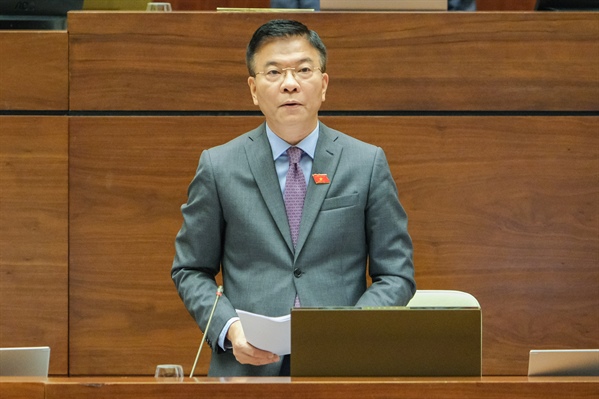 Bộ trưởng Bộ tư pháp Lê Thành Long giải trình một số ý kiến của các đại biểu Quốc hội