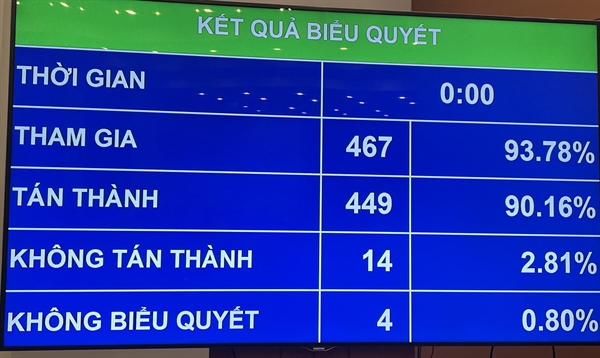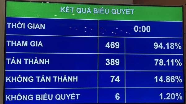 Sau đó, Quốc hội đã bấm nút thông qua toàn bộ Luật Điện ảnh (sửa đổi) với tổng số 449/467 đại biểu tham gia biểu quyết tán thành, chiếm 90,16%.