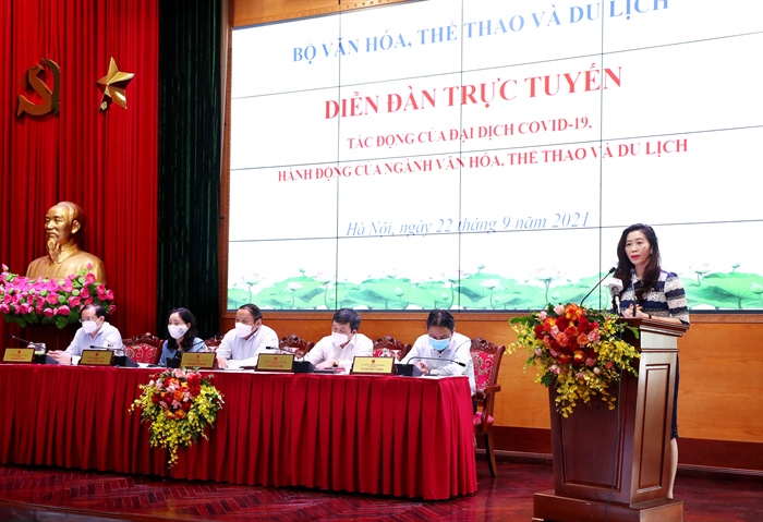Nhấn mạnh toàn ngành cần nhìn nhận thẳng thắn, suy ngẫm nhiều hơn, cảm nhận được sự hi sinh của lực lượng tuyến đầu trong suốt thời gian qua để tự soi mình, cống hiến nhiều hơn nữa, Bộ trưởng kỳ vọng: “Lực lượng đông đảo người làm trong lĩnh vực VHTTDL sẽ cùng chuyển hóa được những mong muốn, ý chí, nguyện vọng, yêu cầu của Đảng, Nhà nước đối với ngành để có tư duy, cách tiếp cận mới, hoàn thành nhiệm vụ được giao. Tin tưởng rằng, dù Covid- 19 có tác động nặng nề đến đâu, chúng ta vẫn sẽ vượt qua. Đó cũng là thông điệp mà diễn đàn mong muốn lan tỏa ra toàn xã hội”.