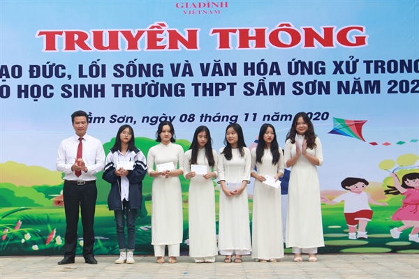 Trường THPT Sầm Sơn trao thưởng cho các học sinh có bài truyền thông xuất sắc trong truyền thông giáo dục đạo đức lối sống và văn hóa ứng xử trong gia đình của trường