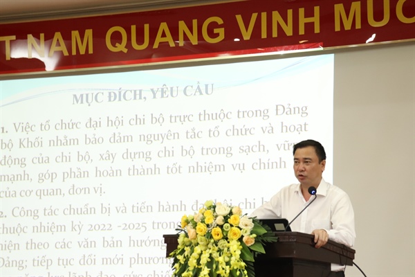 Ủy viên Ban Thường vụ, Trưởng ban Tổ chức Đảng ủy Khối các cơ quan TƯ Đinh Xuân Tùng trực tiếp hướng dẫn các quy trình trước, trong và sau Đại hội Chi bộ