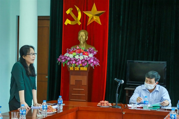 Bà Cát Thị Khánh Vân - Giám đốc Công ty TNHH MTV NXB Văn hóa dân tộc kiêm Tổng Biên tập đã báo cáo tóm tắt kết quả hoạt động giai đoạn 2016-2020 và phương hướng nhiệm vụ giai đoạn tới